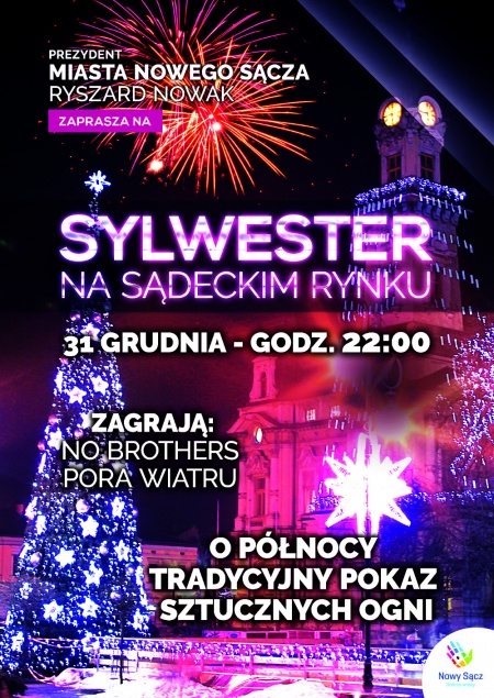 Koncerty zespołów No Brothers i Pora Wiatru, noworoczny toast i pokaz sztucznych ogni – tradycyjnie zapraszamy do spędzenia ostatniej w roku 2015 nocy na sądeckim Rynku. Dużo dobrej muzyki zapewnią finaliści m.in. telewizyjnego programu "Must be the Music" - zespoły No Brothers i Pora Wiatru.