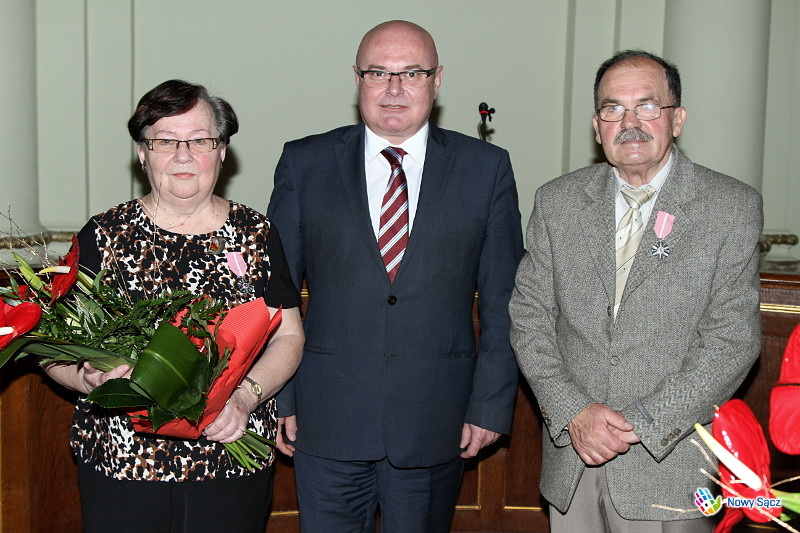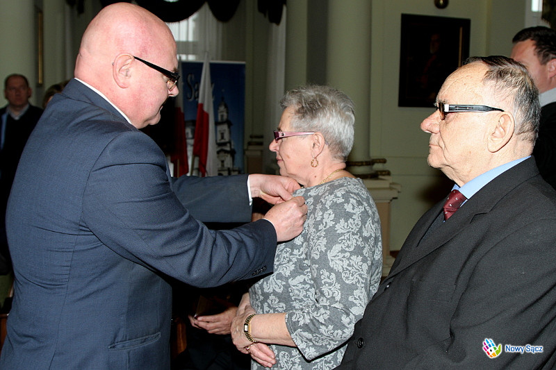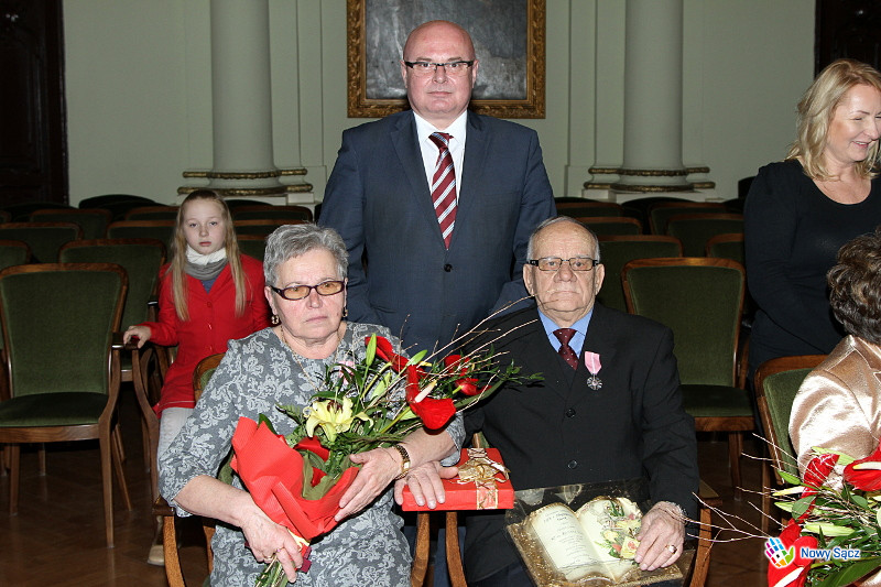 - To dla mnie zaszczyt gościć Państwa w sądeckim ratuszu i odznaczyć Medalem za długoletnie pożycie małżeńskie. Jesteście Państwo wzorem jak przejść przez życie, które niejednokrotnie niesie ze sobą nie tylko przyjemne ale i trudne chwile. Jest to chwila wzruszająca, bo kiedy goszczę Państwa na uroczystościach jubileuszowych zawsze myślę od tym jak biegnie życie człowieka, które niejednokrotni mimo wielu trudności jesteście w stanie przejść i być wzorem dla pokoleń i wyróżnieniem dla Sądeczan - powiedział prezydent Ryszard Nowak.