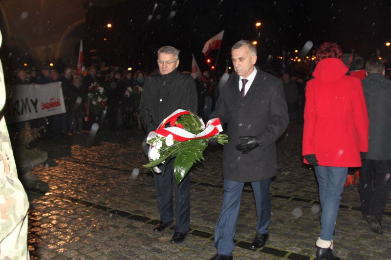 Po eucharystii Sądeczanie w asyście licznych pocztów sztandarowych przeszli pod pomnik Solidarności. Tam szef sądecko-gorlickiego oddziału NSZZ "Solidarność" Krzysztof Kotowicz przypomniał czasy stanu wojennego, grudniową noc 1981 i podkreślił, że wprowadzenie przez gen. Wojciecha Jaruzelskiego stanu wojennego w Polsce to rozpoczęcie wojny, która miała na celu zdusić rozpoczęte przemiany polityczne jak i gospodarcze w kraju.