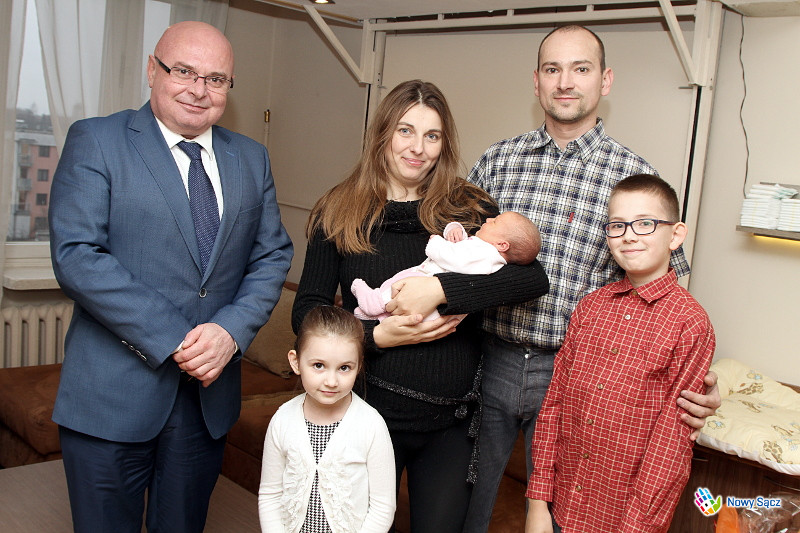 Gościa specjalnego powitało starsze rodzeństwo małej Alicji - 6-letnia Patrycja i 11-letni Kacper. Prezydent pogratulował rodzicom przyjścia na świat pierwszej Nowosądeczanki w 2016 roku, a całej rodzinie Mieszkowiczów życzył przede wszystkim zdrowia, wszelkiej pomyślności i spełnienia marzeń. Dla najmłodszego członka rodziny Ryszard Nowak zostawił również duży i kolorowy prezent niespodziankę.