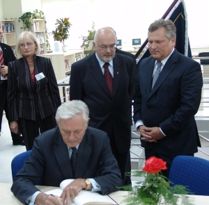 Pamiątkowy wpis w bibliotece uczelnianej