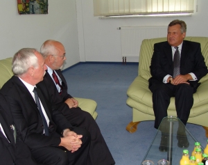 Prezydent Kwaśniewski w rozmowie z prezydentem Wiktorem i rektorem Pawłowskim
