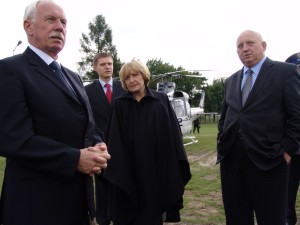 9 września: Tuż po przylocie helikoptera – marszałek Sejmu Józef Oleksy z małżonką Marią oraz prezydentem Nowego Sącza