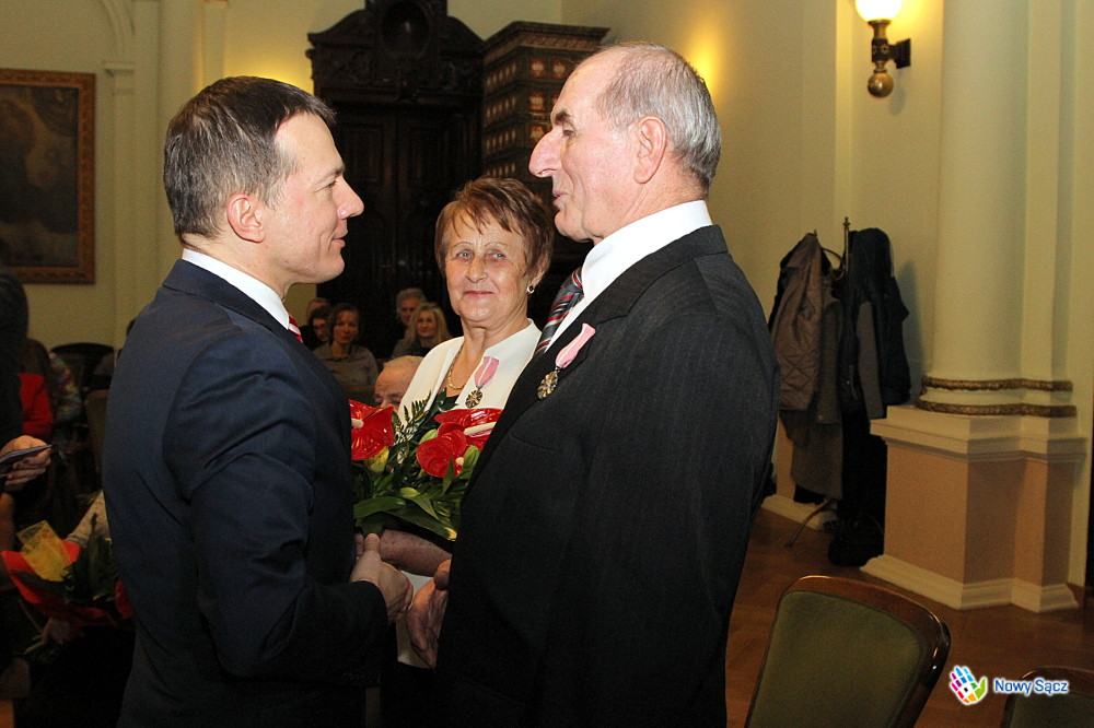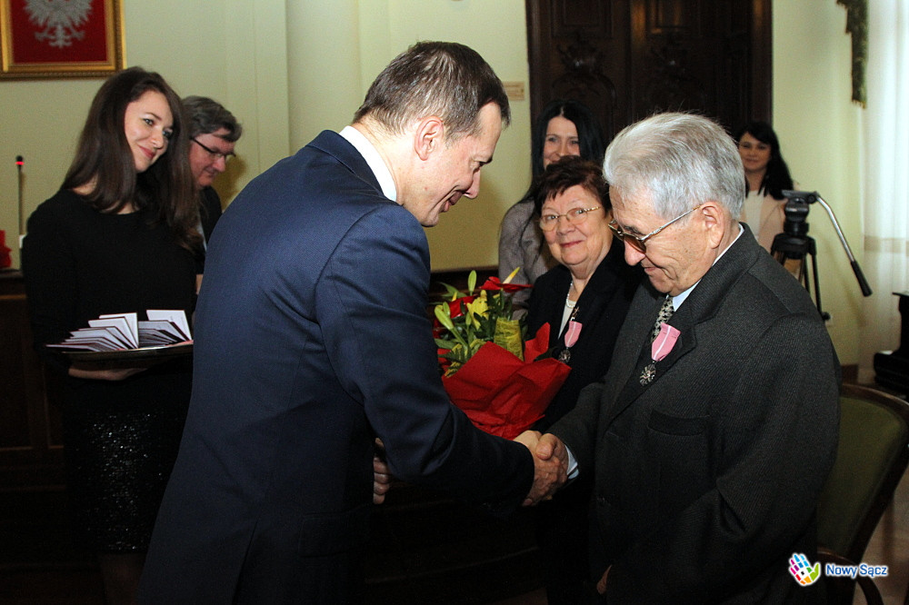 Dziewięć par świętowało jubileusze małżeńskie obchodząc swoje Złote, Szmaragdowe i Diamentowe Gody. Życzenia długich lat życia w zdrowiu, wzajemnej miłości i szacunku bliskich, podczas uroczystości w sali reprezentacyjnej sądeckiego ratusza, przekazał Jubilatom Wiceprezydent Nowego Sącza Wojciech Piech.