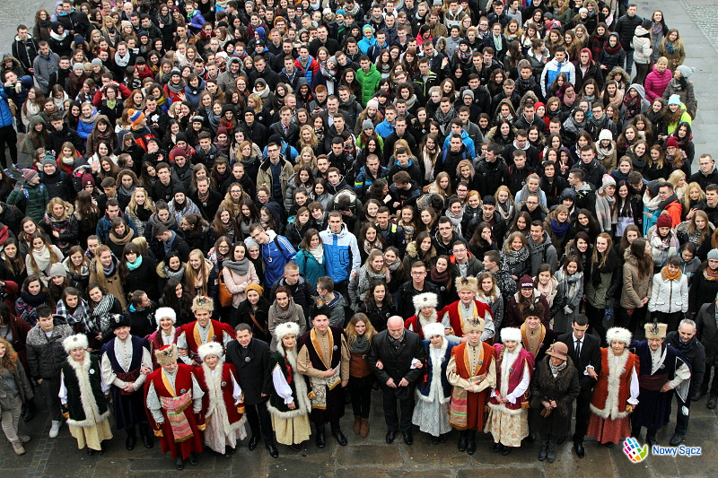 Po raz dziewiąty sądeccy maturzyści spotykali się przed miejskim ratuszem, aby zatańczyć tradycyjnego Poloneza. Wszystko rozpoczęło sie od słów "Poloneza czas zacząć", a korowód blisko 1400 maturzystów ruszył na czele z członkmi Zespołu Regionalnego "Sądeczanie" w stylizowanych strojach. W pierwszych parach zatańczyli również przedstawiciele władz Nowego Sącza: przewodnicząca Rady Miasta Bożena Jawor i wiceprezydenci Jerzy Gwiżdż oraz Wojciech Piech.