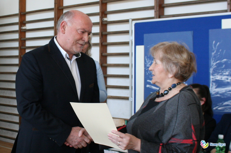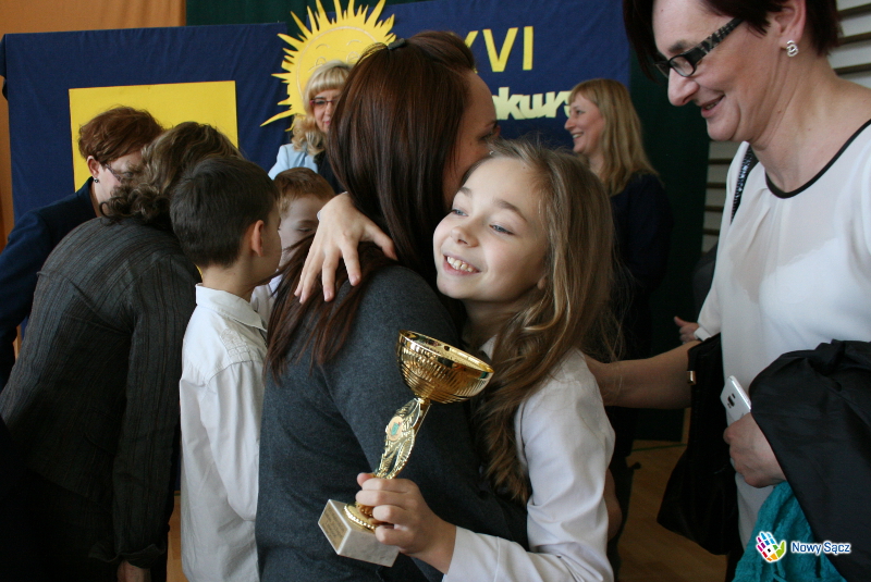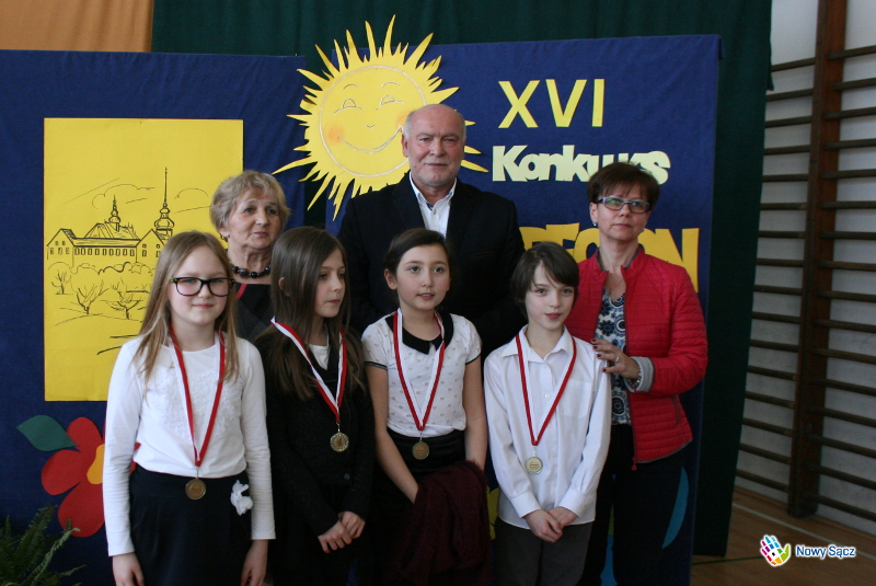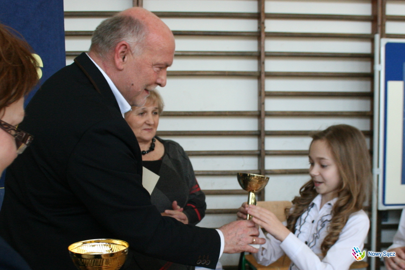 Honorowy patronat nad konkursem sprawował Zastępca Prezydenta Miasta Nowego Sącza – Jerzy Gwiżdż, który wręczył uczestnikom puchary, medale pamiątkowe oraz słodycze - Chciałbym podkreślić, że jest to piękny konkurs, ponieważ jest to konkurs o naszym regionie, o naszej małej ojczyźnie, o naszym mieście Nowym Sączu. Cieszę się, że tyle szkół w tym roku wzięło w nim udział, bo jest to taki konkurs, w którym nie jest najważniejsze to, żeby wygrać, a najważniejsze jest to, aby na nim po prostu być, aby o swoim mieście opowiedzieć, narysować i pokazać, że jest ono naprawdę piękne. Bardzo dziękuję, że szkoła obdarzyła mnie honorowym patronatem nad tym konkursem, który uważam za bardzo ważne wydarzenie organizowane w naszym mieście kierowane do dzieci. Wiceprezydent złożył także zebranym życzenia z okazji zbliżających się Świąt Wielkanocnych.