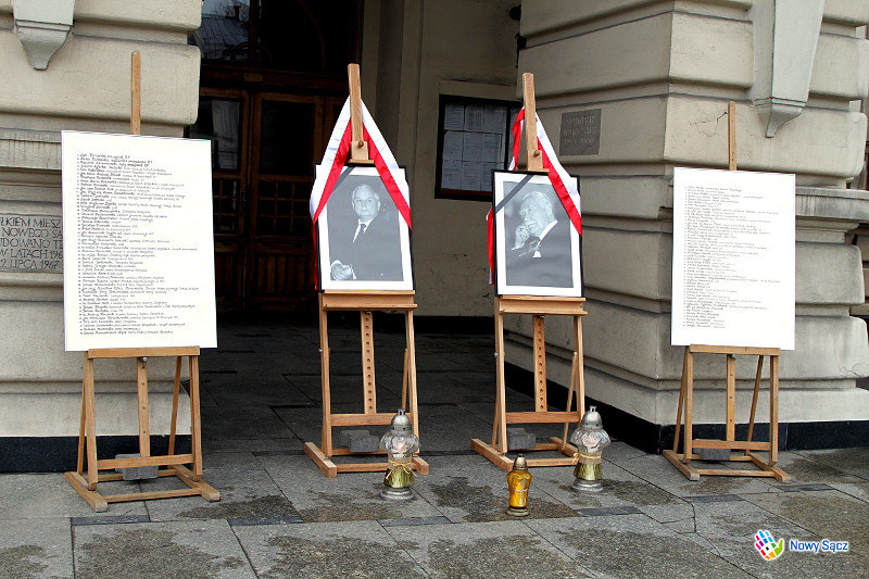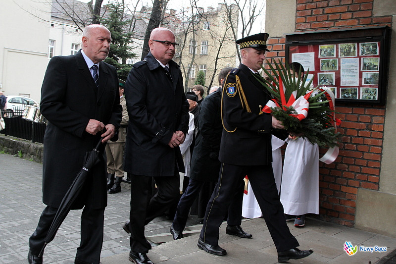Po Eucharystii władze miasta i powiatu, delegacje sądeckich parlamentarzystów, kombatantów, Sybiraków oraz przedstawiciele służb mundurowych złożyły wiązanki kwiatów najpierw przed Tablicami Katyńskimi, a następnie po przejściu do sądeckiego ratusza, pod tablicami upamiętniającymi Honorowych Obywateli Miasta Nowego Sącza, Prezydenta RP Lecha Kaczyńskiego i Prezydenta RP na uchodźstwie Ryszarda Kaczorowskiego, którzy zginęli w katastrofie smoleńskiej. Ich fotografie stanęły też przed wejściem do ratusza wraz z tablicami, na których znalazły się nazwiska wszystkich 96 ofiar katastrofy samolotu prezydenckiego pod Smoleńskiem.