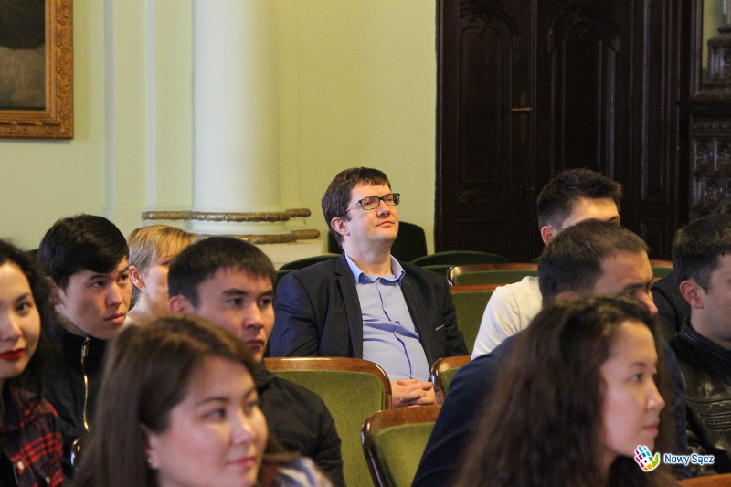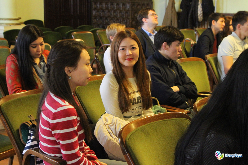 We wtorek 12 kwietnia w sali reprezentacyjnej sądeckiego ratusza odbyło się spotkanie studentów uczelni Kazakh National Agrarian University z Jerzym Leśniakiem, który wprowadził gości Wyższej Szkoły Biznesu - National-Louis University w historię, tradycję i zwyczaje Nowego Sącza.