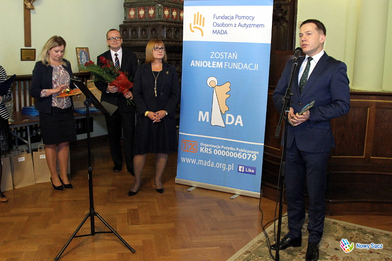 Zastępca Prezydenta Nowego Sącza Wojciech Piech wziął udział w jubileuszu 20-lecia działalności Fundacji Pomocy Osobom z Autyzmem "MADA" oraz 10-lecia działalności Warsztatu Terapii Zajęciowej. Wypełniona po brzegi sala reprezentacyjna sądeckiego ratusza była najlepszym dowodem na to, jak ważną rolę w życiu chorych na autyzm pełni prowadzona przez Bożenę Fryc i jej męża Ryszarda Fundacja. Jej dyrektor Jadwiga Krzeszowiak powitała zaproszonych gości, w tym sądeckich parlamentarzystów, przedstawicieli władz Powiatu Nowosądeckiego oraz instytucji i organizacji wspierających działalność Fundacji.