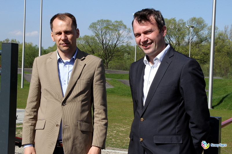 Prezydent Ryszard Nowak podczas wizyty na sądeckim pumptracku otworzył nowy sezon dla użytkowników rowerów oraz osób ćwiczących na flow parku. Obejrzał również pokaz przygotowany przez członków grupy gimnastycznej Berz Elite, która na co dzień korzysta z urządzeń do street workoutu.