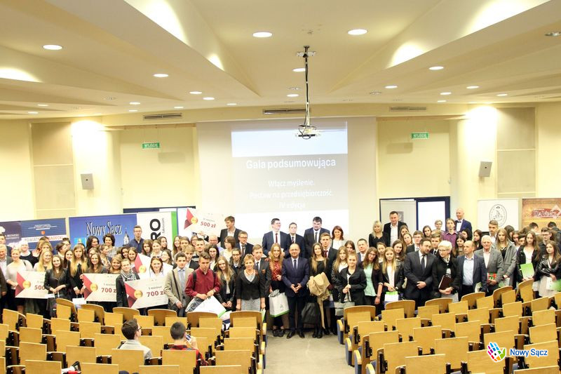 Rolę gospodarzy gali pełnili wspólnie Zastępca Prezydenta Nowego Sącza Wojciech Piech i Starosta Nowosądecki Marek Pławiak. - Ktoś powiedział: chcesz, szukasz sposobu. Nie chcesz, szukasz powodu – tak Wojciech Piech skomentował przedsiębiorczość młodych ludzi ze szkół ponadgimnazjalnych z Nowego Sącza i powiatu nowosądeckiego. - Widać, że młodym ludziom w mieście Nowym Sączu i powiecie nowosądeckim się chce. Widzieliśmy tutaj projekty z dużym poziomem przedsiębiorczości, przy czym te projekty pokazywały postawy przedsiębiorcze wzbogacone o element wrażliwości społecznej, wrażliwości na los drugiego człowieka. Jestem tym poruszony - dodał Wojciech Piech.