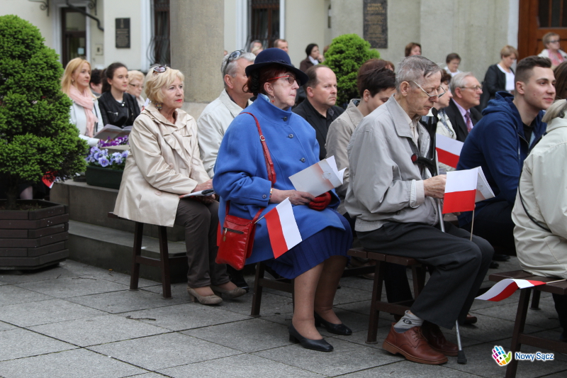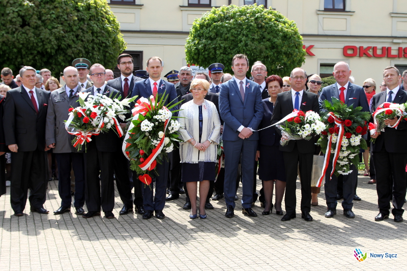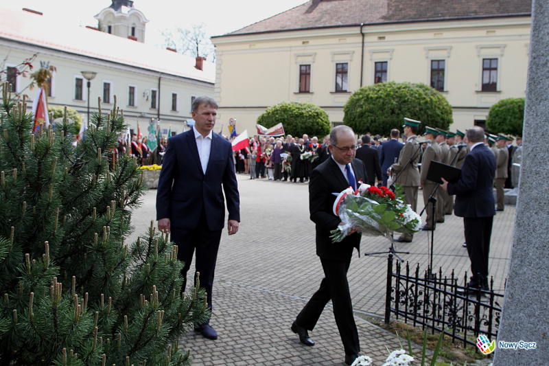 W swoim przemówieniu Zastępca Prezydenta Nowego Sącza Jerzy Gwiżdż podkreślił: - Od wielu lat, corocznie, spotykamy się 3 maja wspominając ważne wydarzenie z naszej narodowej przeszłości, pamiętając słowa kardynała Stefana Wyszyńskiego, że „naród, który odcina się od historii, który wychowuje młode pokolenie bez powiązań historycznych to naród renegatów. Taki naród skazuje się dobrowolnie na śmierć, podcina korzenie własnego istnienia”. Mając na uwadze tą mocną przestrogę kardynała tysiąclecia, spotykamy się także dzisiaj, w 225 rocznicę uchwalenia ustawy zasadniczej zwanej Konstytucją 3 Maja. Zastępca Prezydenta zauważył także, że "w kalendarzu najjaśniejszych kart naszej historii przyjęcie przez Sejm Czteroletni Ustawy Rządowej, wprowadzającej w Polsce nowy, ale co ważniejsze, nowoczesny ustrój państwowy i prawny, zajmuje znaczącą pozycję". Wiceprezydent powiedział także, że "Konstytucja 3 maja, jako historyczne i patriotyczne dziedzictwo po światłych naszych poprzednikach wciąż prowokuje i każe stawać sobie aktualne pytania o nasze dzisiaj, nasze pojmowanie honoru, dobra ojczyzny, o nasz wkład w jej pomyślność. Odpowiedzi dają nam wielcy Polacy: poeta i mąż stanu. Norwid pisał: „Ojczyzna to wielki – zbiorowy – obowiązek”, a Wincenty Witos dodawał: „Kiedy nie było Polski – dążyć do Niej, gdy przyszła – pracować dla Niej, a gdy jest w potrzebie – bronić Jej.” Kończąc swoje przemówienie Jerzy Gwiżdż w dniu 225-lecia uchwalenia drugiej w Europie ustawy zasadniczej przytoczył słowa profesora Henryka Samsonowicza: „Konstytucja 3 Maja stanowi ważny element pamięci zbiorowej, bez której żadna polska wspólnota istnieć nie może”.