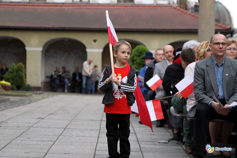 Uroczystą Mszą Świętą w intencji Ojczyzny w Bazylice św. Małgorzaty rozpoczęły się w Nowym Sączu obchody uchwalenia Konstytucji 3 Maja. W Eucharystii celebrowanej przez Prepozyta Kapituły Kolegiackiej ks. dr Jerzego Jurkiewicza wzięli udział Zastępcy Prezydenta Nowego Sącza Jerzy Gwiżdż i Wojciech Piech. Uroczystość zgromadziła poczty sztandarowe, organizacje i stowarzyszenia kombatanckie oraz przedstawicieli sądeckich szkół. Wydarzenie uświetniła Orkiestra Reprezentacyjna Straży Granicznej w Nowym Sączu pod kierunkiem mjr Leszka Mieczkowskiego, a członkowie Sądeckiej Organizacji "Strzelec" rozdawali uczestnikom obchodów kokardy narodowe i asystowali kombatantom.