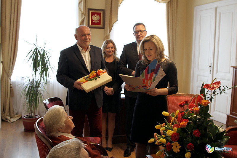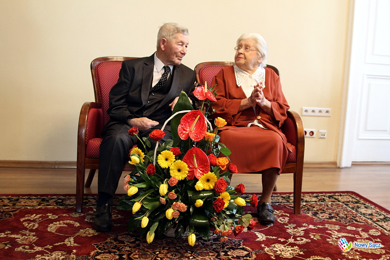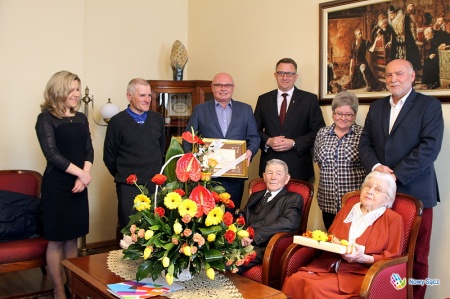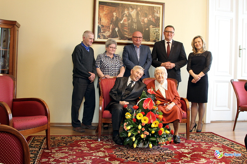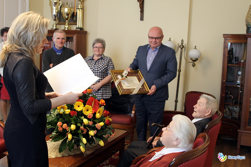 W dniu dzisiejszym Prezydent Miasta Nowego Sącza Ryszard Nowak gościł obchodzących 70. rocznicę pożycia małżeńskiego Marię i Stanisława Wojnarowskich, którzy są przykładem wieloletniej miłości i wspólnego trwania w pokonywaniu trudów życia codziennego. W spotkaniu uczestniczyli również Zastępca Prezydenta Nowego Sącza Jerzy Gwiżdż, kierownik Urzędu Stanu Cywilnego Małgorzata Antkiewicz-Wójs, radny Tadeusz Gajdosz oraz syn Państwa Wojnarowskich wraz z małżonką.