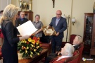 Prezydent Ryszard Nowak złożył jubilatom gratulacje oraz życzenia wręczając bukiet kwiatów i okolicznościowe prezenty - Drodzy Jubilaci, to dla mnie naprawdę wielka przyjemność spotkać się z Państwem z okazji 70. rocznicy Państwa zaślubin. Pragnę złożyć najserdeczniejsze gratulacje i życzenia kolejnych lat przeżytych w dobrym zdrowiu, szczęściu i wzajemnej miłości. Niech ta piękna rocznica będzie szczególną okazją do wspomnień, podsumowań tych pięknych chwil waszego życia. Wzajemna miłość stała się darem szczęścia i pomyślności waszego małżeństwa. Cieszę się z Państwem tym rodzinnym jubileuszem. Proszę przyjąć wyrazy szacunku i uznania za pokonywanie trudności życia codziennego.