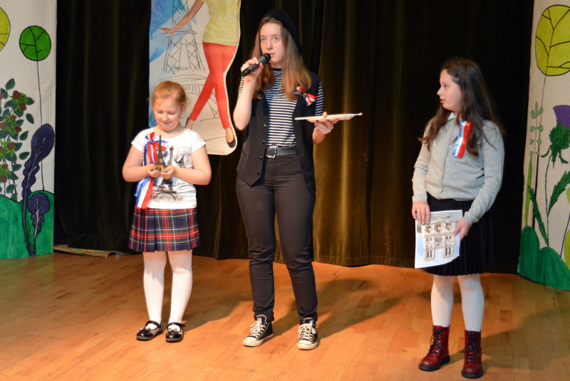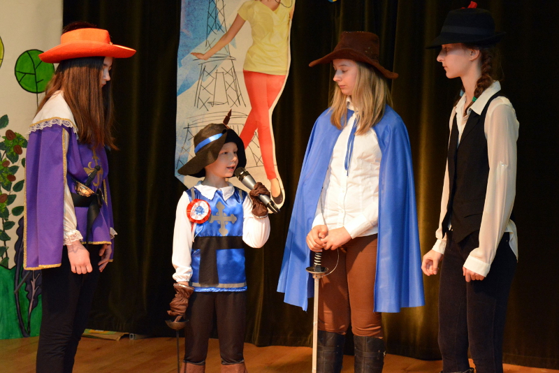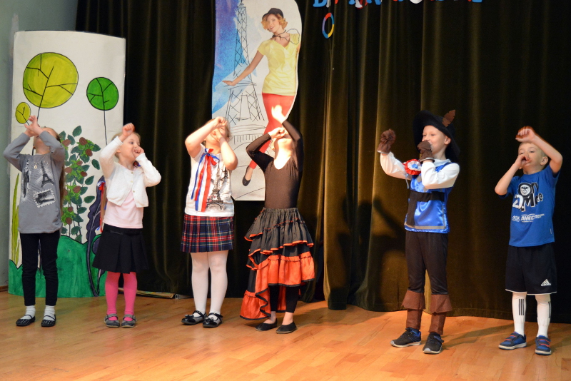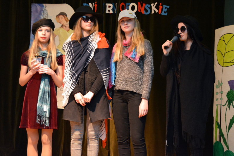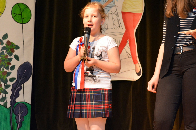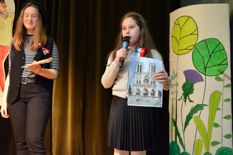 Uczniowie pani Agnieszki przygotowali widowisko, podczas którego licznie zgromadzoną publiczność, czekała krótka "podróż" po Francji, spotkanie m.in. z takimi postaciami jak Napoleon Bonaparte, Trzej Muszkieterowie, Asterix i Obelix. Na scenie nie zabrakło jednego z najbardziej popularnych tańców francuskich, "Kan Kan", który został wykonany przez 12 dziewcząt, należących do koła tańca towarzyskiego, prowadzonego przez panią Halinę Kuklę, instruktora Pałacu Młodzieży w Nowym Sączu. Po duchowej podróży, gości czekał poczęstunek kuchni francuskiej, który został specjalnie przygotowany przez uczestników zajęć języka francuskiego i ich rodziców.