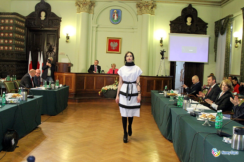 Po uroczystym wręczeniu Tarczy Herbowej w sali reprezentacyjnej ratusza odbył się pokaz mody autorstwa Izabeli Chomorowskiej, uczennicy pierwszej klasy Zespołu Szkół Nr 3. Wśród 10 zaprezentowanych kreacji dominowała biel i czerń oraz proste formy inspirowane Wieżą Eiffla - Wszyscy mogliśmy się przekonać jakie są efekty pracy szkoły. Wszystkim modelkom i Tobie Izabelo życzymy, abyś mogła dalej projektować, tak, aby Polska i świat usłyszały o Twoich projektach. - powiedziała Bożena Jawor, gratulując młodej projektantce odwagi i pomysłowości.