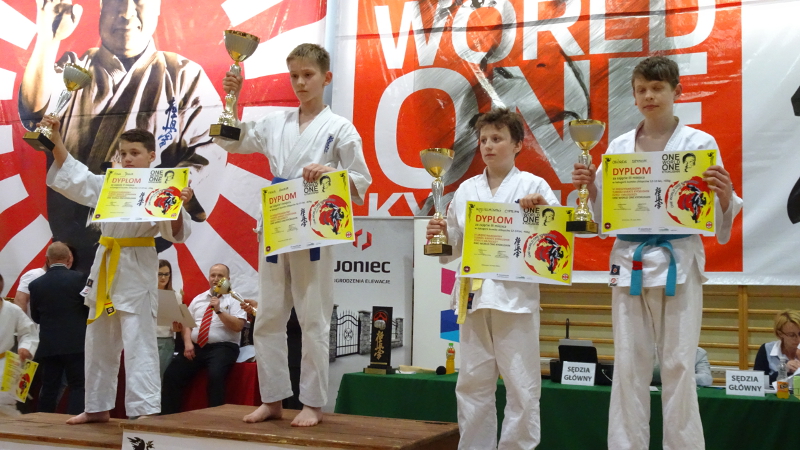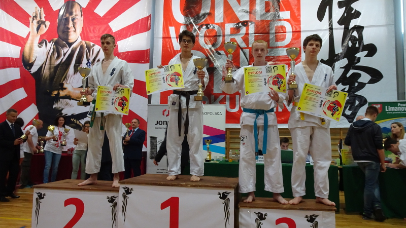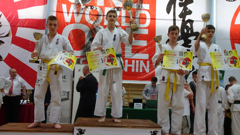 W konkurencjach KUMITE (walka sportowa) drugie miejsce w kat. juniorów-60kg wywalczył Szymon Jaskułka,który po czterech zwycięskich walkach dopiero w finale uległ zawodnikowi z Koszalina przez wskazanie sędziów. Szymon to prawdziwy wojownik, swymi mocnymi walkami wzbudził uznanie wśród licznie zgromadzonej publiczności. W kumite młodzików Kamil Kaleta brązowy medalista Mistrzostw Makroregionu Południowego, po dwóch wcześniej zdecydowanie wygranych walkach spotkał się w finale z czołowym zawodnikiem z Białorusi. Białorusin, który w półfinale pokonał po zaciętej walce Klemensa Ogórka brązowego medalistę ostatnich Mistrzostw Europy w finale również zwyciężył Kamila Kaletę. Trzecie miejsca w kumite w swoich kategoriach wywalczyli: Szymon Ogórek, Mateusz Zarotyński i Tomasz Janczyk.Wszyscy zawodnicy zaprezentowali się bardzo dobrze, szczególnie liczyłem na Nikodema Święsa, który również trafił na zawodnika z Białorusi, którego nie udało mu się pokonać. Cała reprezentacja Klubu dobrze zaprezentowała się na tak dużej międzynarodowej imprezie karate i wszystkim gratuluję skutecznego promowania Miasta Nowy Sącz.