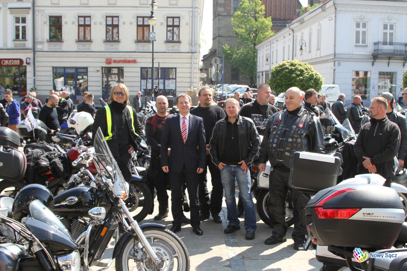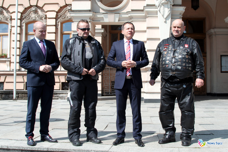 Następnie, po przyjeździe na płytę nowosądeckiego Rynku motocykliści spotkali się z wiceprezydentem Wojciechem Piechem, który pogratulował im podjęcia tak zaszczytnej idei i życzył szczęśliwego przejazdu i powrotu do domu - Cieszy mnie oraz Pana Prezydenta to, że wyjeżdżacie z pewną ideą, nie tylko po to, aby poszukać własnej satysfakcji, choć tę na pewno znajdziecie, ale jedziecie po to, aby pomóc, pomóc tym, którzy są w potrzebie i którzy chcą przyjechać na Światowe Dni Młodzieży i dzięki waszej pomocy ktoś tutaj na pewno przyjedzie. Jedzcie szczęśliwie, a potem wracajcie do nas, będziemy na was czekać.