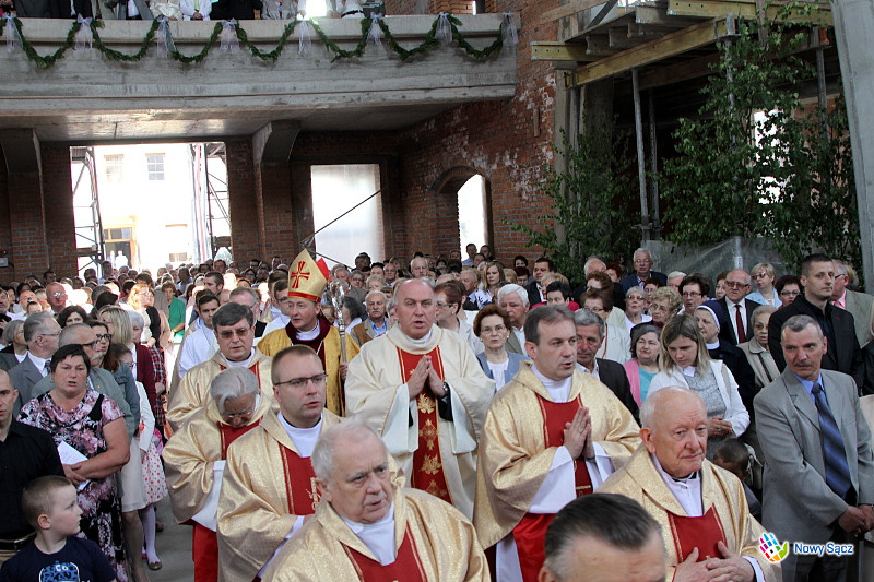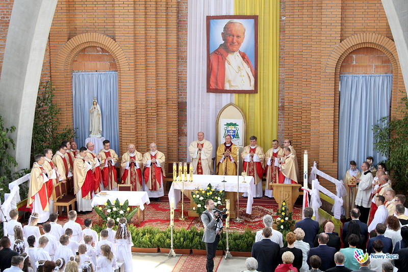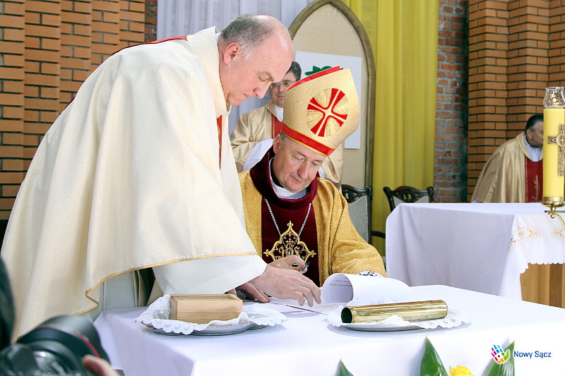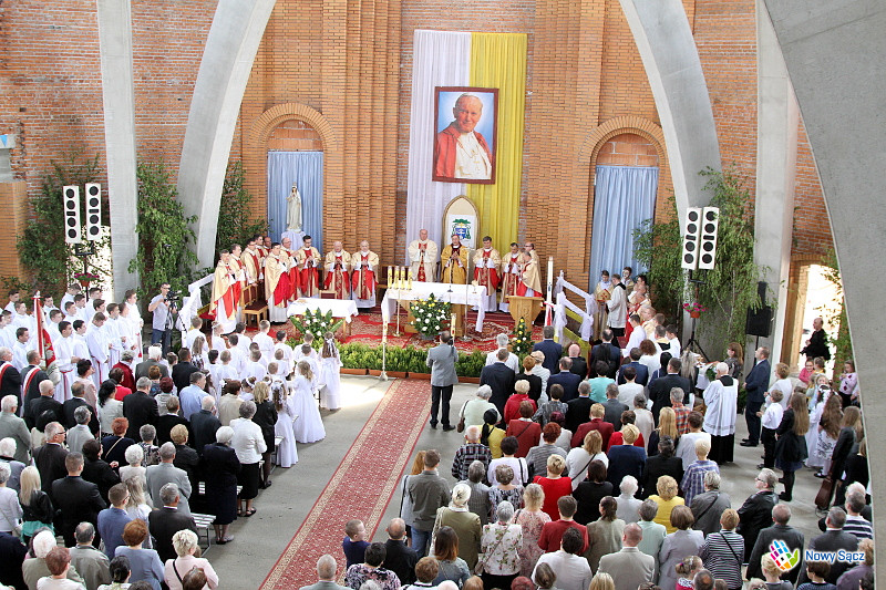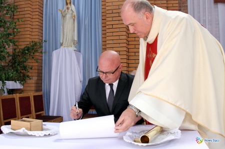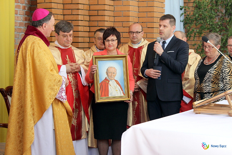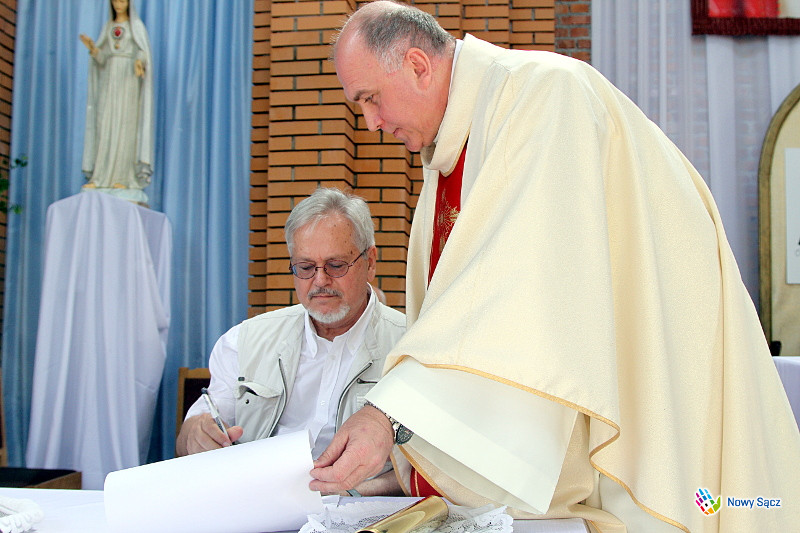 Uroczysty akt upamiętniający uroczystość podpisał Ordynariusz Tarnowski, Prezydent Nowego Sącza Ryszard Nowak, Prepozyt Kapituły Kolegiackiej ks. dr Jerzy Jurkiewicz, Proboszcz Parafii św. Jana Pawła II Zbigniew Biernat, a także architekt kościoła i przedstawiciele głównego wykonawcy budowy kościoła. W wydarzeniu wzięli również udział Zastępca Prezydenta Wojciech Piech, Przewodnicząca Rady Miasta Nowego Sącza Bożena Jawor oraz Janusz Adamek, prezes Sądeckich Wodociągów, które ufundowały pierwszy dzwon dla nowego kościoła, nazwany imieniem Jana Pawła II.