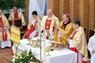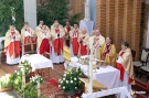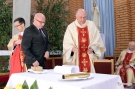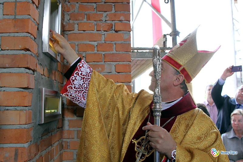 Podczas uroczystej Eucharystii Jego Ekscelencja ks. biskup diecezjalny Andrzej Jeż dokonał symbolicznego wmurowania w fundament budującego się kościoła pw. św. Jana Pawła II kamienia węgielnego z grobu św. Piotra Apostoła. Kamień został pobłogosławiony przez papieża Franciszka.