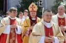 - Dzisiejsza uroczystość Najświętszej Trójcy zamyka i jednocześnie wieńczy cykl wielkich świąt Kościoła Katolickiego, a zarazem wprowadza nas w najgłębszą istotę religii chrześcijańskiej, religii jednego Boga, który stanowi wspólnotę życia i miłości trzech osób boskich - Ojca, Syna i Ducha Świętego - mówił bp Andrzej Jeż kierując słowo do wspólnoty parafialnej. Zapowiadając wmurowanie kamienia węgielnego Biskup Ordynariusz nawiązał do symboliki architektonicznej samej Bazyliki św. Piotra oraz jej otoczenia.
