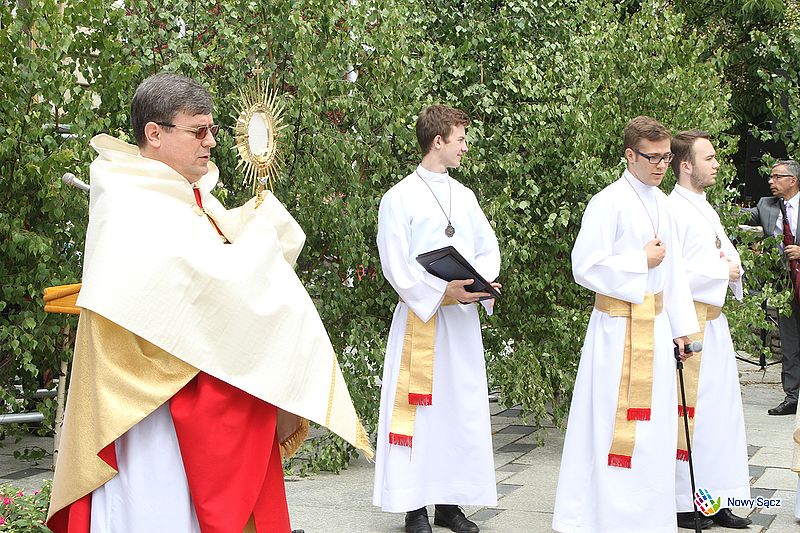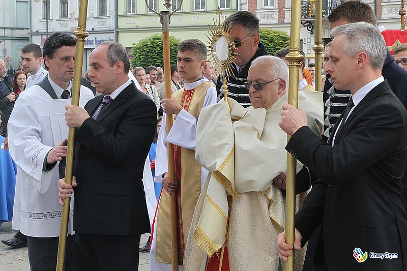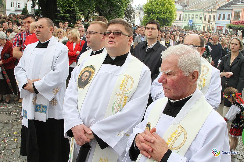 Kilka tysięcy Sądeczan wzięło udział w uroczystościach Bożego Ciała, które rozpoczęły się Mszą Świętą w Bazylice św. Małgorzaty. Eucharystię celebrowali Prepozyt Kapituły Kolegiackiej ks. dr Jerzy Jurkiewicz, Proboszcz Parafii św. Kazimierza ks. dr Jan Siedlarz i Proboszcz Parafii Ducha Świętego o. Józef Polak SJ. Władze miasta reprezentowali Zastępca Prezydenta Nowego Sącza Wojciech Piech, a także Wiceprzewodniczący Rady Miasta Tomasz Cisoń i Michał Kądziołka.