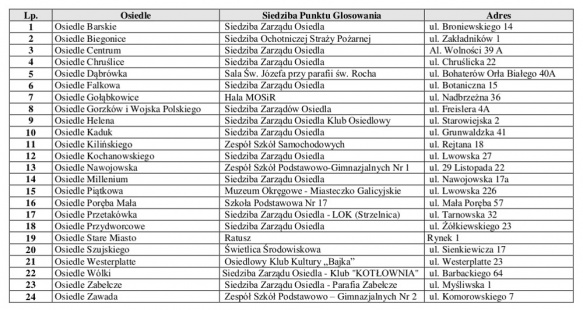 Stałe punkty do głosowania będą zlokalizowane: