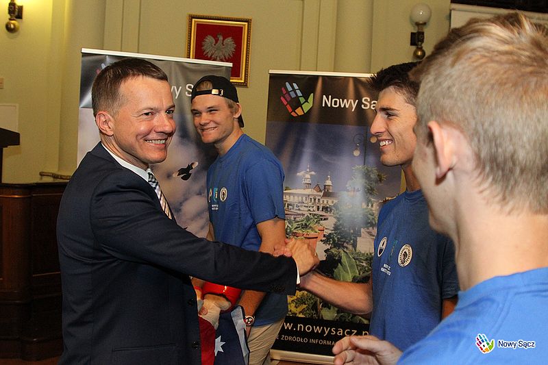 Dzień po emocjonującym meczu bokserskim Polska - Australia, który odbył się na hali sportowej II Liceum Ogólnokształcącego w Nowym Sączu, w ratuszu gościła ekipa australijskich bokserów. Gości przyjął Zastępca Prezydenta Nowego Sącza Wojciech Piech. - Jesteście dowodem na to, że sport to nie tylko rywalizacja, ale także niezwykle ważna i potrzebna wymiana kulturalna, poznawanie nowych miejsc, ludzi i zawieranie nowych przyjaźni. Nie zawsze wygrana jest najważniejsza, a w tym wypadku zwycięzcami jesteście wy wszyscy. Dziękuję za wasz przyjazd do Nowego Sącza i mam nadzieję, że w przyszłym roku spotkamy się ponownie w naszym mieście na kolejnym meczu Polska - Australia.