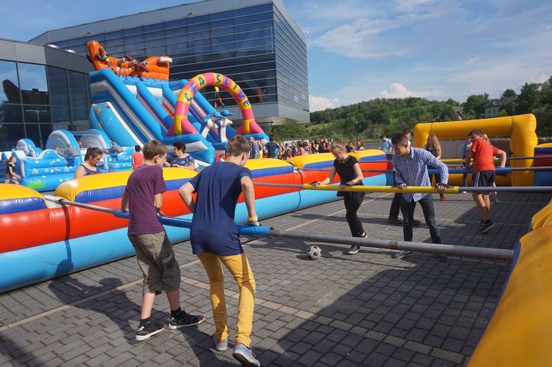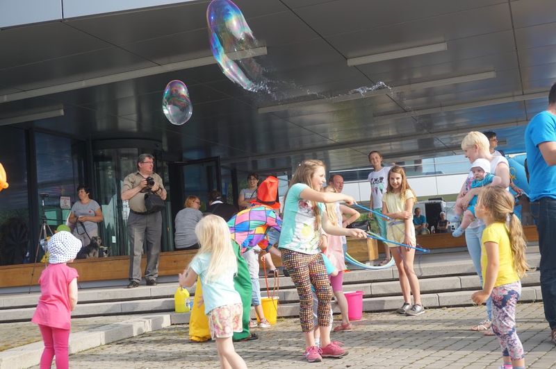 Niedzielne popołudnie z mnóstwem atrakcji ściągnęło dziesiątki rodzin z osiedla i nie tylko. Olbrzymia zjeżdżalnia z delfinami, fantastyczny dmuchany tor przeszkód, "stadion" do gry w piłkę nożną – żywe piłkarzyki w 5-osobowych drużynach stały się największą i najnowszą atrakcją dla młodzieży i dzieci.