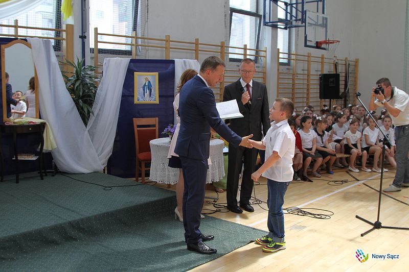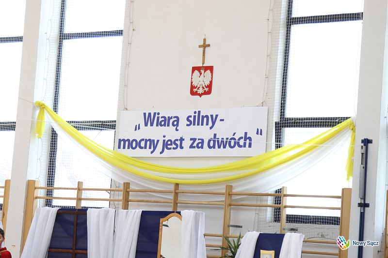Dzisiejsza uroczystość w Szkole Podstawowej Nr 21 z Oddziałami Integracyjnymi im. Świętego Jana Pawła II w Nowym Sączu to pamiątka poświęcenia sztandaru szkoły przez Św. Jana Pawła II na starosądeckich Błoniach w dniu 16 czerwca 1999 roku, a także obchody jubileuszu 18 lat istnienia placówki. Wydarzenie to rozpoczęła Msza Święta w Kościele p.w. Matki Bożej Niepokalanej, po której odbyła się uroczysta akademia pod tytułem "Wiarą silny - mocny jest za dwóch" przygotowana przez uczniów. W Święcie Szkoły udział wzięli Zastępca Prezydenta Miasta Nowego Sącza Wojciech Piech, radny Józef Gryźlak, przewodnicząca rady osiedla Gorzków Krystyna Witkowska, wiceprzewodniczący zarządu Osiedla Wojska Polskiego Józef Florian, dyrektorzy sądeckich szkół, a także nauczyciele, uczniowie i ich rodzice.