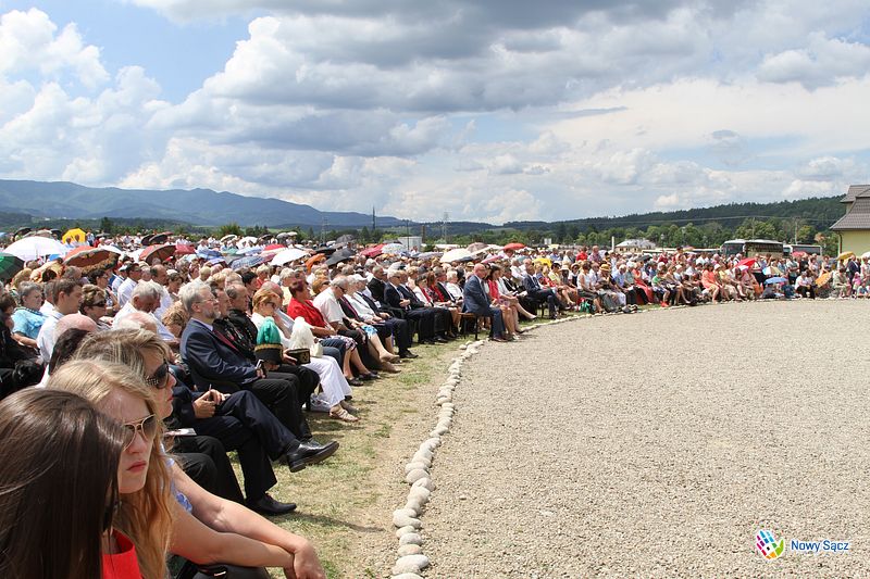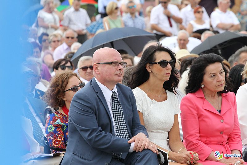 Burmistrz Lelek przypomniał słowa Św. Jana Pawła II i wyraził wdzięczność starosądeczan za oficjalne ustanowienie przez Stolicę Apostolską Św. Kingi patronką Starego Sącza - Poprzez rodzinę toczą się dzieje człowieka, dzieje zbawienia ludzkości. Rodzina znajduje się pośrodku tego wielkiego zmagania pomiędzy dobrem a złem, między życiem a śmiercią, między miłością a wszystkim, co jest jej przeciwieństwem. Te słowa z Listu do Rodzin przypomniał nam w tym miejscu Ojciec Święty Jan Paweł II. Pragnę w imieniu zgromadzonych u stóp Ołtarza Papieskiego rodzin z Diecezji Tarnowskiej podziękować, że nie jesteśmy pozostawieni sami sobie, że mamy oparcie w Kościele. Dziękuję za modlitwę, dar eucharystii i codzienną troskę o rodzinę. Stary Sącz ma dzisiaj szczególne szczęście. Otrzymaliśmy dekret Stolicy Apostolskiej, który na prośbę Rady Miejskiej i społeczności Starego Sącza potwierdził to czego od wieków doświadczają mieszkańcy, że Św. Kinga jest patronką tego miejsca. To dla nas wielki dar, przywilej, zaszczyt i radość.