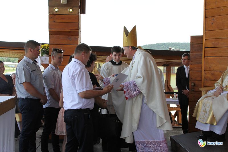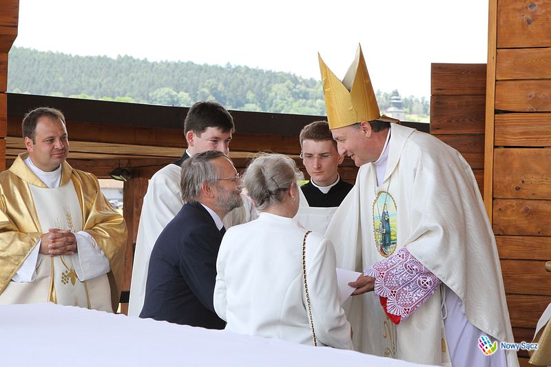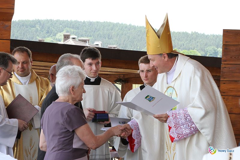 Podczas mszy na Starosądeckich Błoniach bp. Andrzej Jeż odznaczył małżeństwa z wieloletnim stażem i rodziny wielodzietne zasłużone dla Diecezji Tarnowskiej.