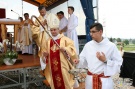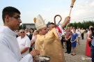 Po wygłoszonej homilii nastąpiła ceremonia poświęcenia placu pod budowę kościoła, podczas której ks. bp Leszek Leszkiewicz poświęcił także stojący na tym miejscu krzyż i figurę patrona parafii - św. Jana Chrzciciela.