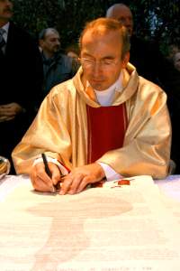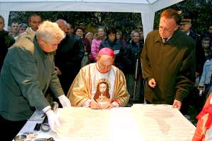 Akt – przy wykonanej przez orkiestrę i chóry "Glorii" Vivaldiego - podpisali: ks. biskup Stanisław Budzik, prezydent miasta Nowego Sącza Józef Antoni Wiktor, przewodniczący Rady Miasta Jacek Chronowski, prepozyt Bazyliki Kolegiackiej św. Małgorzaty ks. dr prałat Waldemar Durda, panowie darczyńcy – Józef i Marian Koralowie.