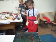 - Dzieci obcowały oko w oko ze sztuką i mogły tworzyć w pracowniach plastycznych tamtejszego Liceum Plastycznego – mówi Anna Skierska. Pierwszy dzień pobytu upłynął na warsztatach malowania na tkaninie oraz na wodzie, czyli marblingu. - W pracowni wypełnionej krosnami i gobelinami, miejscowi artyści plastycy Ewa i Władysław Dominiak w sposób niezwykle interesujący opowiadali o sztuce i technikach właściwych dla tkaniny. Owocem tego spotkania i wspólnej pracy były jedyne w swoim rodzaju podkoszulki – wspominają organizatorki wyjazdu.