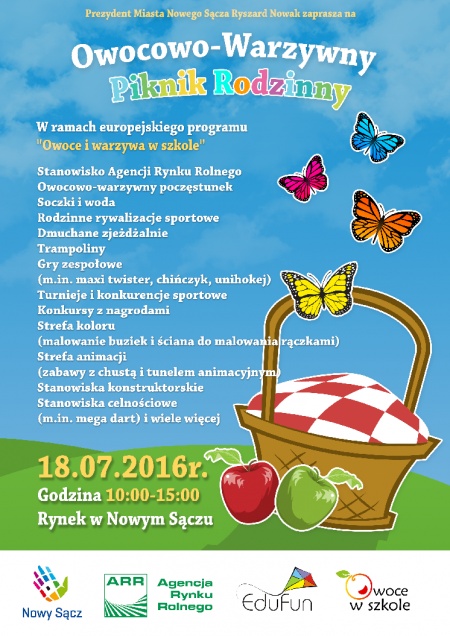 Maxi twister, unihokej, dmuchane zjeżdżalnie, trampoliny i konkursy z nagrodami – to wszystko i o wiele więcej czeka na uczestników rodzinnego pikniku pod znakiem warzyw i owoców. Na piknik zaprasza Prezydent Nowego Sącza Ryszard Nowak.