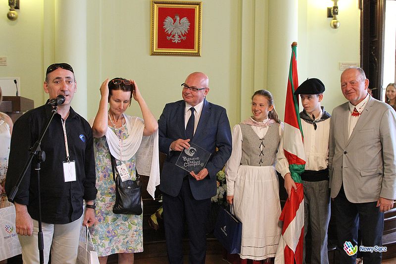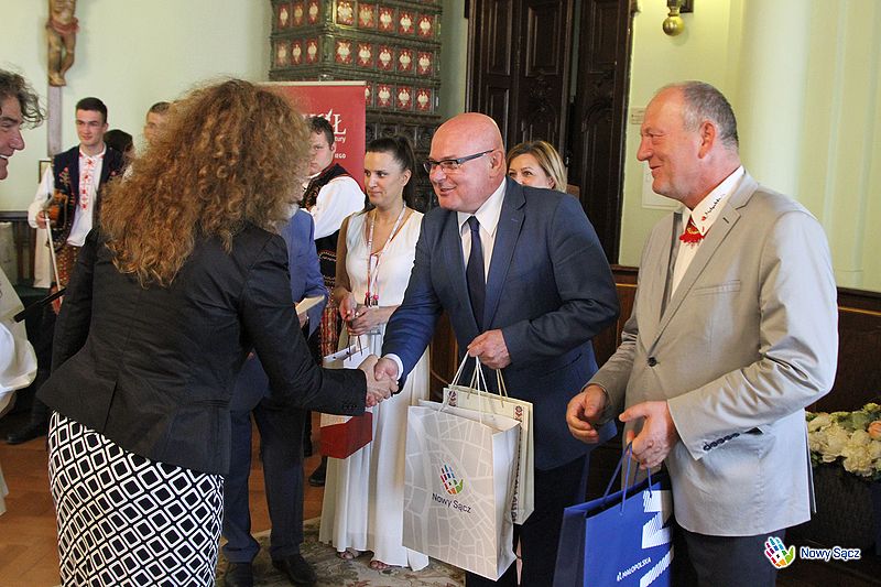 W mszy świętej inaugurującej Festiwal "Święto Dzieci Gór" wzięli również udział członek Zarządu Województwa Małopolskiego Leszek Zegzda, Przewodnicząca Rady Miasta Nowego Sącza Bożena Jawor oraz dyrektor Małopolskiego Centrum Kultury "Sokół" Antoni Malczak, którzy po uroczystej liturgii, wraz z przedstawicielami zespołów z różnych stron świata, udali się do sądeckiego ratusza na spotkanie z władzami miasta. Tam wszystkich uczestników powitał Prezydent Ryszard Nowak. - W imieniu swoim i wszystkich Sądeczan serdecznie was witam. Życzę miłego pobytu, samych sukcesów i mam nadzieję, że czas spędzony tutaj będzie dla was odpoczynkiem, który miło będziecie potem wspominać - mówił Ryszard Nowak. - Jeszcze nie wiem komu będę kibicował, ale wszystkim życzę zwycięstwa.