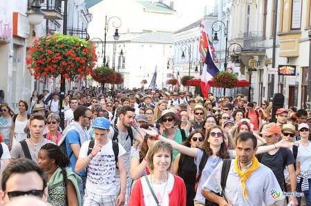 Wieczorna część pierwszego dnia Tygodnia Misyjnego w Nowym Sączu rozpoczęła się od radosnego przemarszu ze Stadionu Sandecji pod Bazylikę św. Małgorzaty. Tam czekał na wszystkich i kropił święconą wodą Prepozyt Kapituły Kolegiackiej ks. dr Jerzy Jurkiewicz, który chwilę potem przewodniczył uroczystej mszy święta z udziałem władz miasta, księży z okręgu nowosądeckiego oraz duchownych z diecezji Nantes i Dijon. Pielgrzymów i gości w języku francuskim powitał biskup diecezjalny Andrzej Jeż.