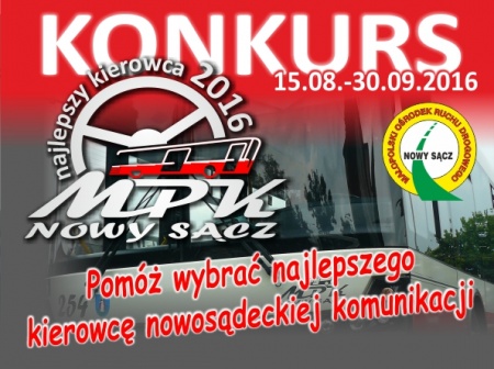 Miejskie Przedsiębiorstwo Komunikacyjne Sp. z o.o. w Nowym Sączu ma przyjemność poinformować, że od dnia 15 sierpnia 2016r. rusza trzecia edycja Konkursu na najlepszego kierowcę komunikacji miejskiej.