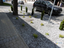 Zieleniec przy ul. Lwowskiej wygląda jak nowy. Nie tylko wygląda: został zrekultywowany i na nowo zagospodarowany przez Wydział Gospodarki Komunalnej Urzędu Miasta Nowego Sącza. Nasadzenia iglastych krzewów i białe, żwirowe tło przywróciły temu miejscu estetyczny wygląd.