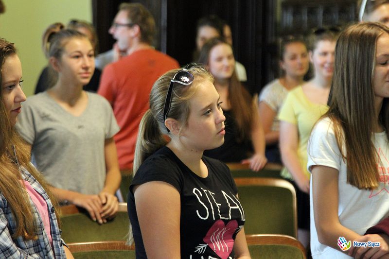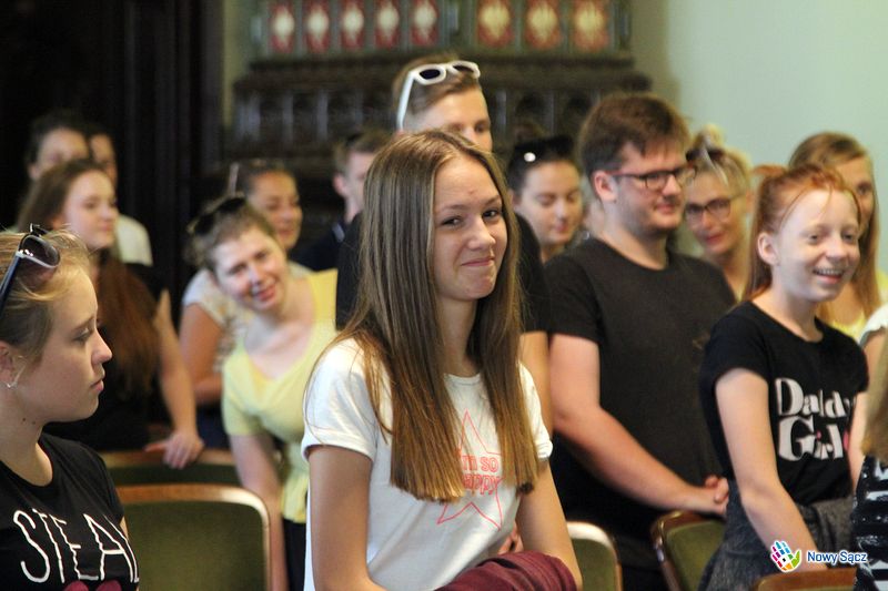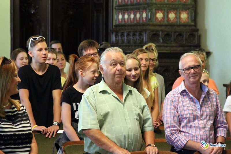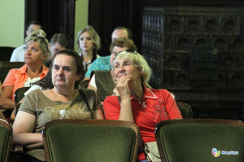 Na zakończenie II Artystycznej Integracji Chorzów - Nowy Sącz uczestnicy artystycznych wydarzeń spotkali się z Zastępcą Prezydenta Miasta Wojciechem Piechem oraz Jerzym Leśniakiem, którzy przybliżył historię sądeckiego ratusza, w którym odbyło się spotkanie.