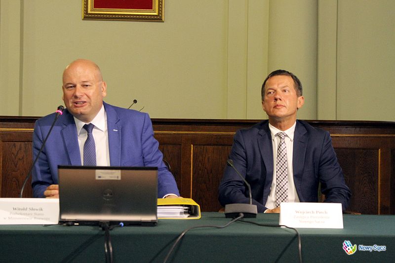 Wizyta wiceministra rozwoju w Nowym Sączu rozpoczęła się od spotkania z władzami miasta. Witolda Słowika podjął prezydent Ryszard Nowak wraz ze swoimi zastępcami Jerzym Gwiżdżem i Wojciechem Piechem. Rozmowa dotyczyła najważniejszych problemów Sądecczyzny, także w kontekście skomunikowania Nowego Sącza z autostradą A4 oraz możliwości szybkiego połączenia kolejowej stolicy subregionu sądeckiego z Krakowem.