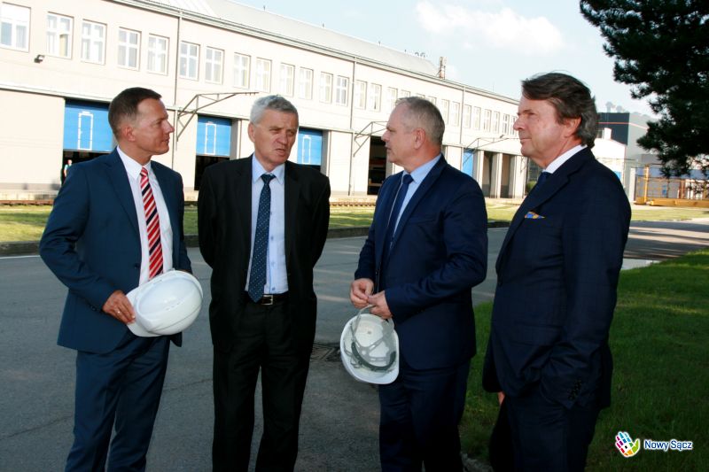 Powitali go Zbigniew Jakubas, właściciel Grupy Newag i Zbigniew Konieczek, prezes zarządu spółki, senator Stanisław Kogut oraz Zastępca Prezydenta Nowego Sącza Wojciech Piech.