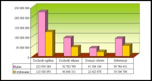 Dochody własne w porównaniu do założeń planu rocznego zostały wykonane następująco: