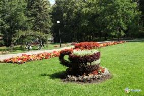 W materiale przygotowanym przez Portal Komunalny czytamy:: "Bardzo ciekawa aranżacja kwiatowa znajduje się też w Nowym Sączu. W otoczeniu ruin zamku stworzono zegar kwiatowy. Konstrukcja zegara o średnicy 5 m obsadzona jest begonią stalekwitnącą, a w otoczeniu znajdują się niskie krzewy tawuły japońskiej i berberysa oraz jałowca płożącego. Tereny wokół zdobią: śliwa wiśniowa „Nigra” oraz kompozycje krzewów ozdobnych. Każdego roku (od 2009) zegar nawiązuje do ważnych wydarzeń. W tym roku widnieją na nim symbole Światowych Dni Młodzieży. Ogrody Miejskie z kwiatowymi filiżankami i rzeźbami tańczących dzieci w strojach lachowskich, które nawiązują do festiwalu folklorystycznego odbywającego się Nowym Sączu od kilkunastu lat – Święta Dzieci Gór. Kwiatowe filiżanki obsadzone są kwiatami begonii stalekwitnącej, irezyny, santoliny, smagliczki, starca. Pergola z różą pnącą stanowi otoczenie dla rzeźby dzieci tańczących w lachowskich strojach, w jej wnętrzu znajduje się ławeczka dla zakochanych. W 1885 r. rada miejska przystąpiła do utworzenia Ogrodu Miejskiego. Od tamtej pory park stał się miejscem często uczęszczanym przez mieszkańców i turystów. Piękne aranżacje kwiatowe, śpiew ptaków, odgłos fontanny pozwala na relaks i chwilowe oderwanie się od codziennego życia.