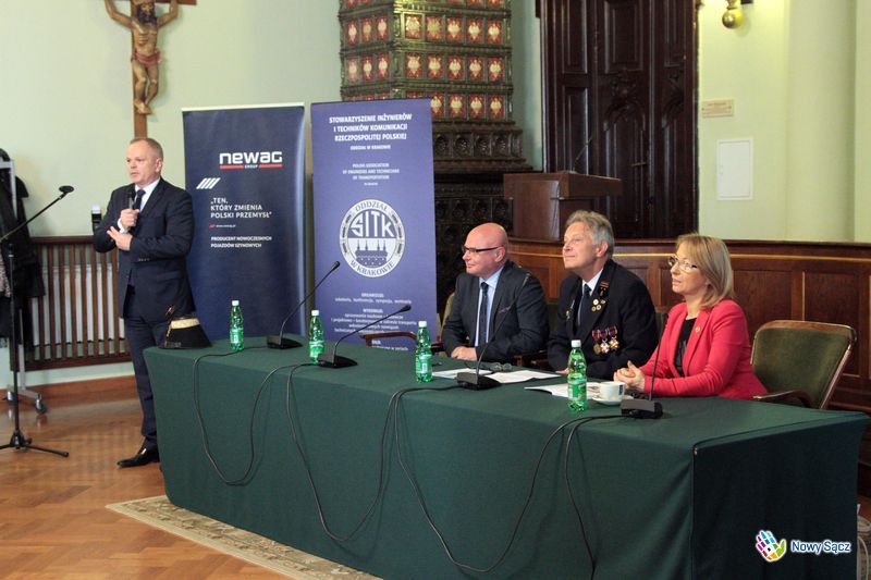 Zbigniew Konieczek mówił o historii sądeckiej kolei i najbliższych planach firmy NEWAG. - W 1876 roku decyzja o budowie kolei, która połączyła Nowy Sącz ze światem, zapadła w Wiedniu. Wtedy Franciszek Józef, cesarz Austrowęgier, podjął tę decyzję oczywiście przy wsparciu Sądeczan. Teraz po 140 latach koło historii zatacza krąg i mamy znowu niepowtarzalną okazję, aby może 150-lecie kolei świętować jadąc do Krakowa przez Podłęże - Piekiełko w godzinę. Jeżeli tak się stanie to znowu po 150 latach Nowy Sącz dostanie kolejną szansę, bo transport i przemieszczanie się sprawiają, że się rozwijamy - powiedział prezes firmy NEWAG.
