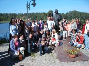 4. Sądeczanie podczas ubiegłorocznej wizyty na ziemi augustowskiej, w Studzienicznej, gdzie stoi pomnik Papieża, częstego uczestnika spływów kajakowych na jeziorach i rzekach w tamtym rejonie.
