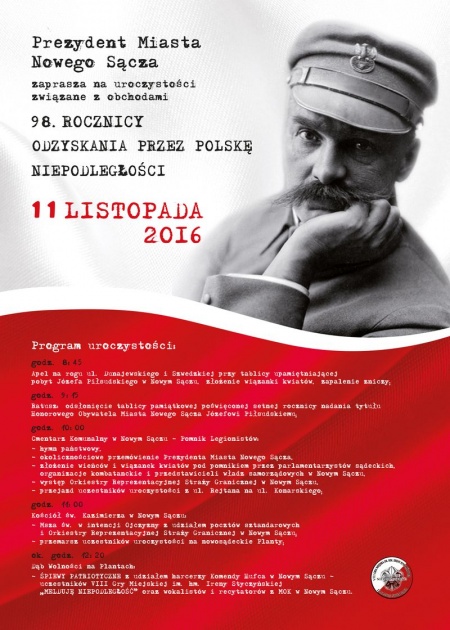 98 lat temu Polska po ponad stuletniej niewoli odzyskała niepodległość. 11 listopada (piątek) w Nowym Sączu odbędą się uroczyste obchody tej rocznicy, na które zaprasza prezydent Ryszard Nowak.
