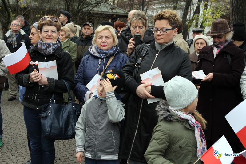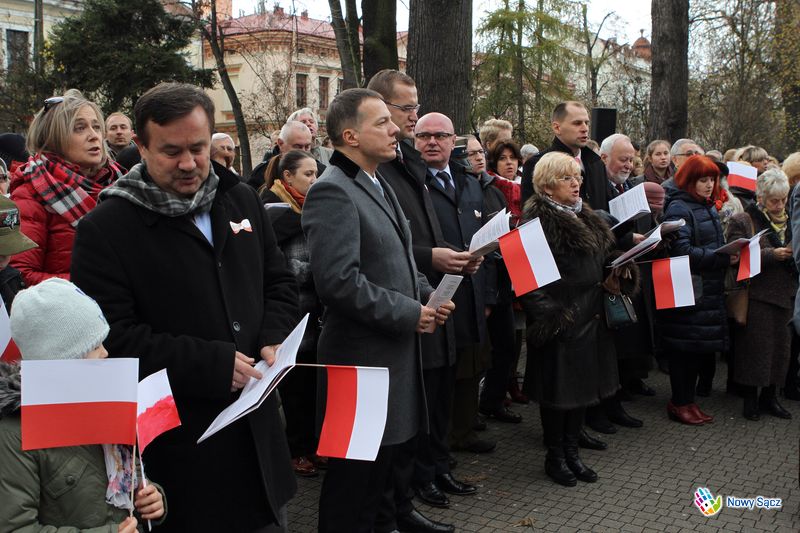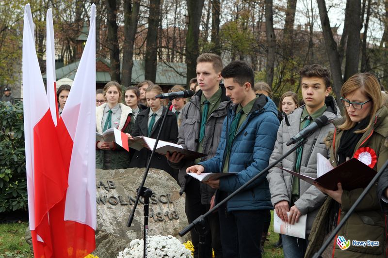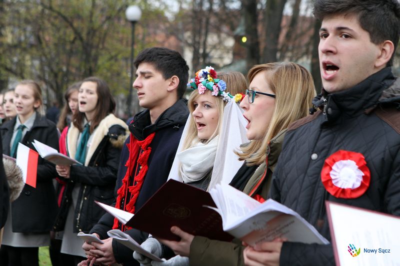 Po mszy uczestnicy przeszli na planty pod Dąb Wolności, gdzie czekali harcerze i młodzież z Miejskiego Ośrodka Kultury w Nowym Sączu. Razem z licznie zebranymi mieszkańcami miasta odbył się koncert pieśni legionowych. Nie zabrakło "Szarej piechoty", "Marszu I Brygady" ani "Ułanów". Koncert pod tytułem„Śpiewy patriotyczne” przygotowali go uczestnicy VIII Gry Miejskiej im. hm Ireny Styczyńskiej pod hasłem "Melduję niepodległość".